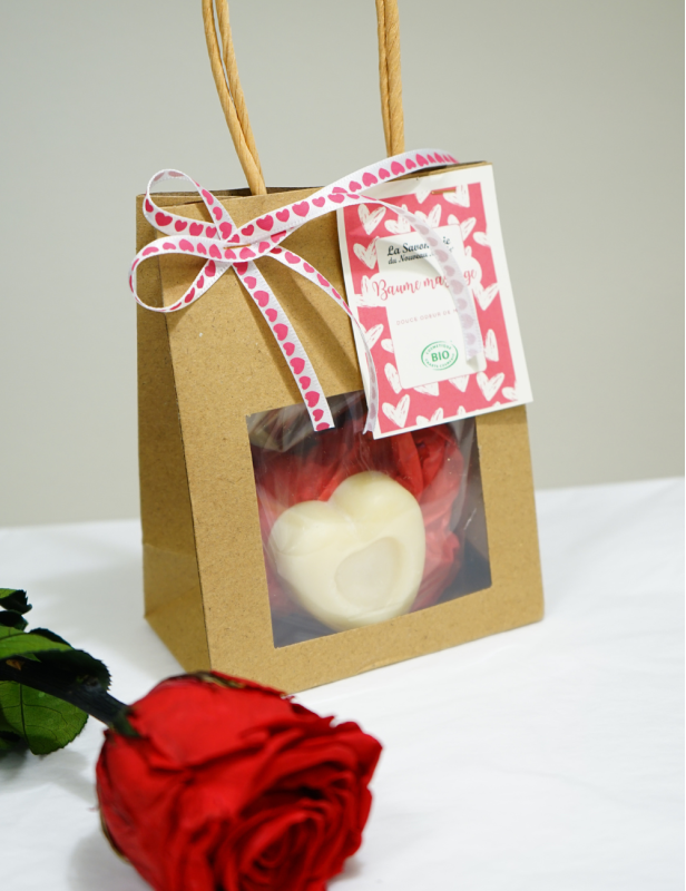 Masser délicatement avec le baume la partie de ta peau à masser. Composé de beurre de cacao, la chaleur de ta peau va faire fondre celui-ci.